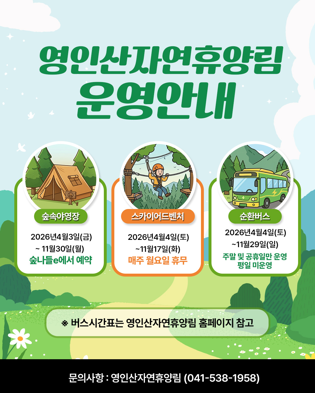영인산자연휴양림 숲속야영장, 스카이어드벤처, 순환버스 운영안내
